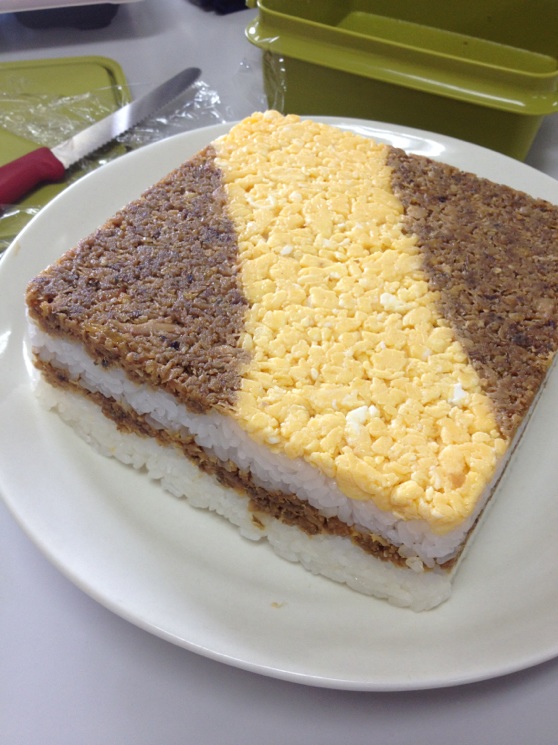 で、その下にお母さん特製の「押し寿司」が入った容器☆*:.。. o(≧▽≦)o .。.:*☆