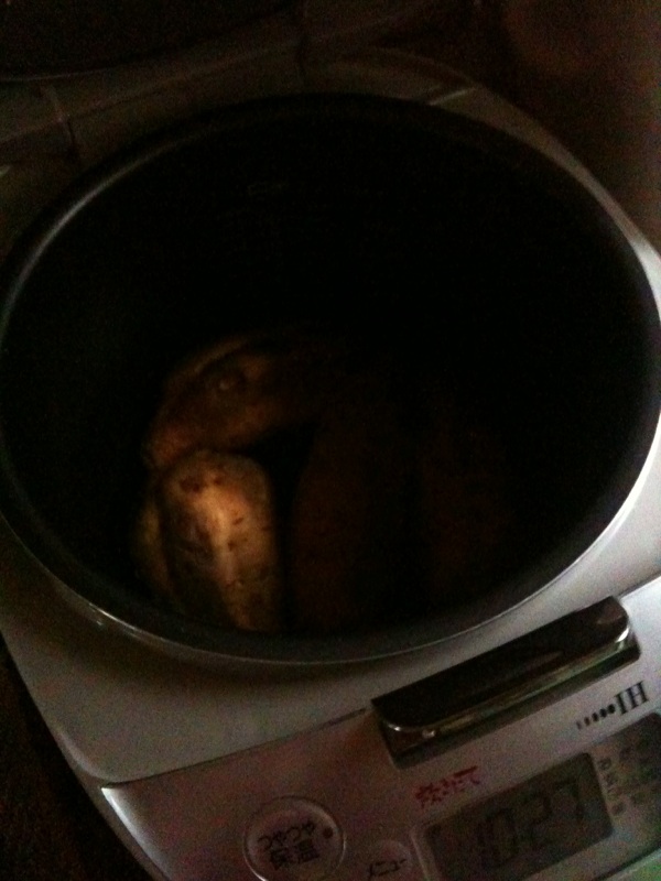 ここに洗ったお芋を入れて、お水をひたひたにしたらスイッチON!