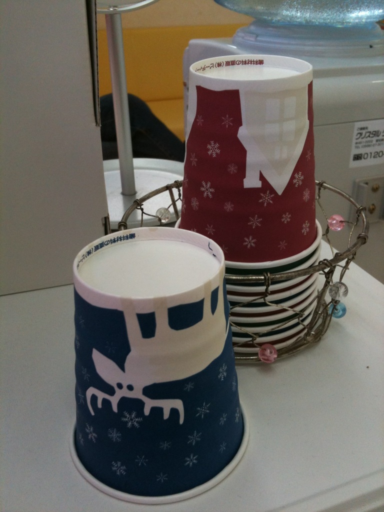 さて、クリスマスが近づいて来るとここのデンタルクリニックは紙コップがクリスマス仕様になる