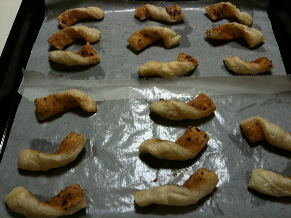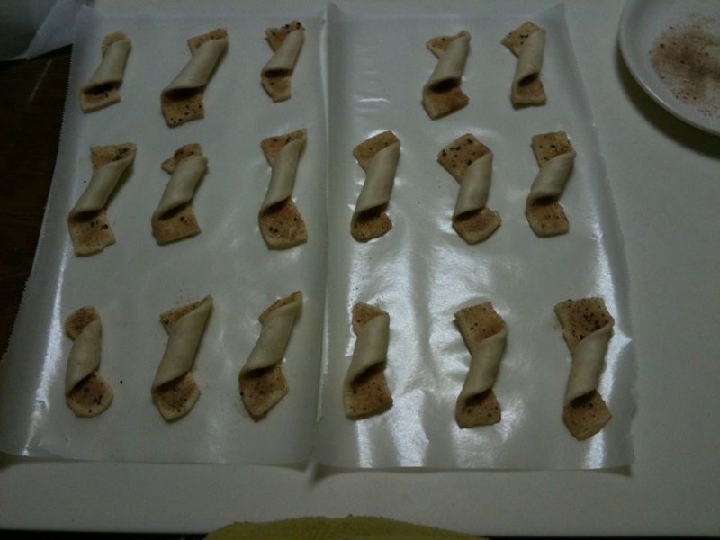 ちょコは手が温かいので、伸ばしたりしてる内に生地の中のバターが溶けてしまうのだ(’~;)