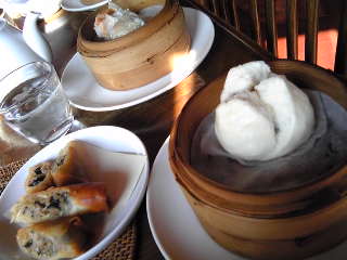 本日のお粥は『蓮の実粥』で、春巻きやピリ辛焼売に焼豚まん♪