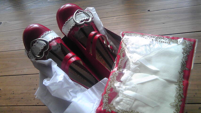 この靴はランカちゃんみたいなブーツじゃないけど、赤に白が入ってるからこれで代用f^_^;
