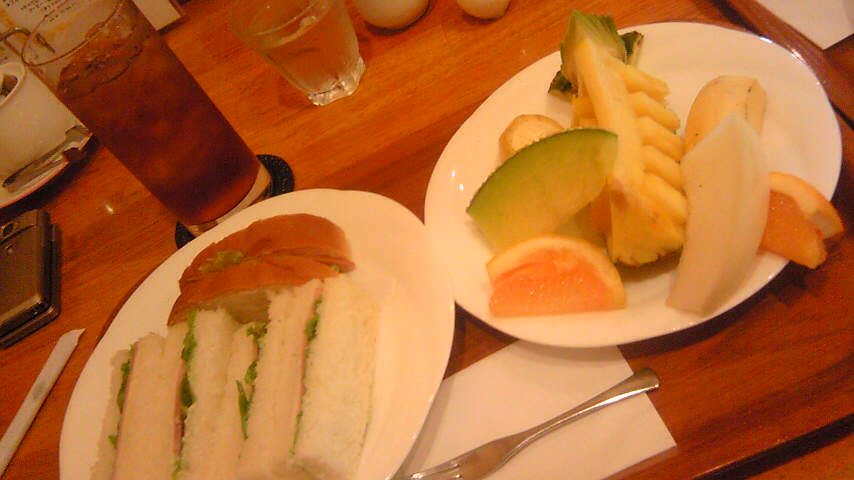 早速、サンドイッチとアイスティーをフルーツセットで注文♪