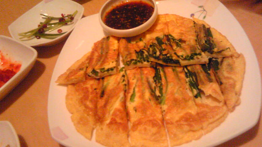 チヂミにはニラがたっぷり入ってるのが透けて見えるぅ(T_T)