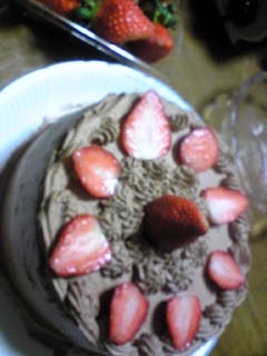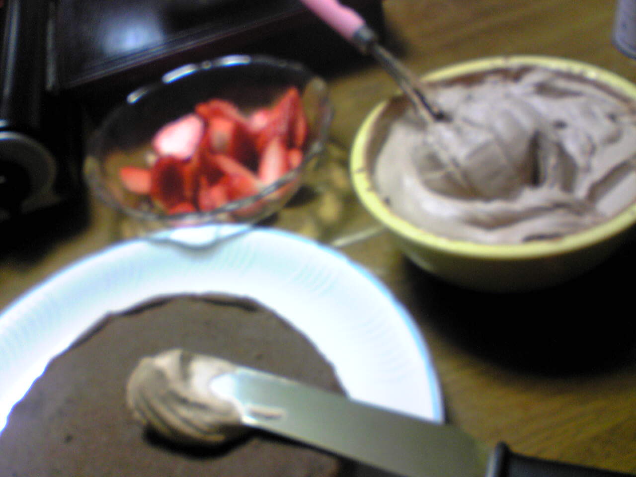 さてさて、一眠りしてからケーキ作り♪…と言っても買ってきたスポンジにチョコクリームと苺を乗せるだけf^_^;